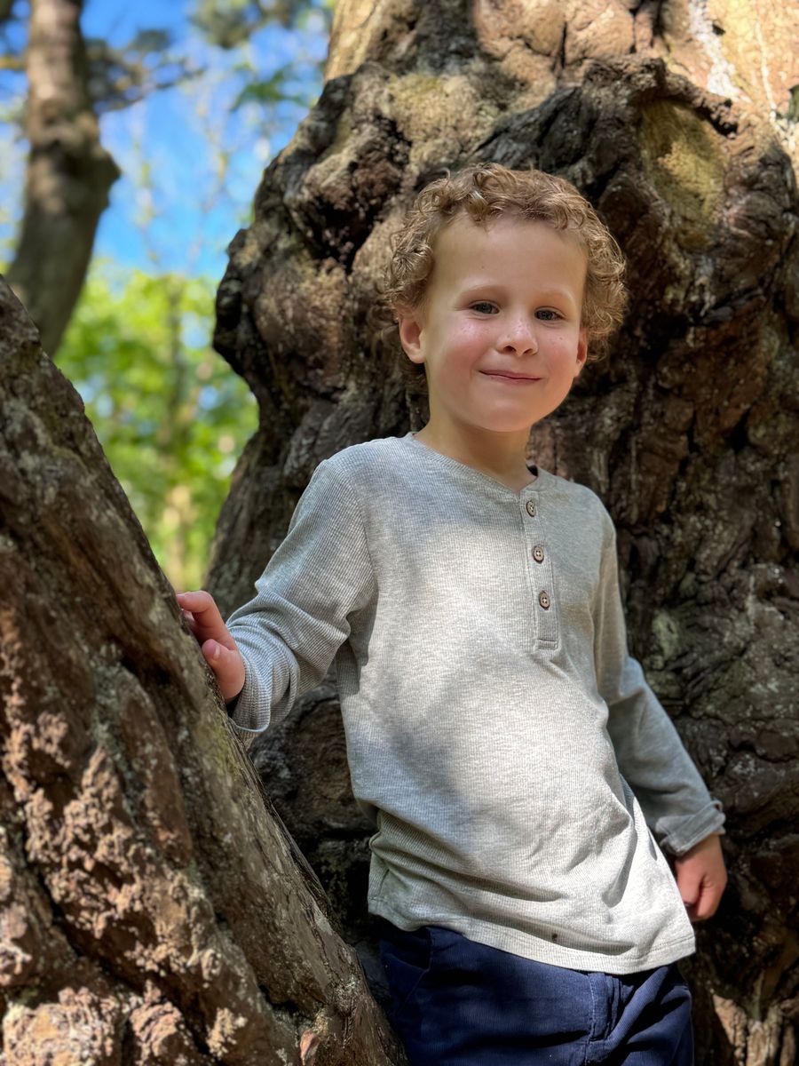 This Adams Ribbed Henley by me & henry is a cozy must-have for boys, made from 100% soft cotton that keeps playtime comfy all day long. Its ribbed texture and classic henley style add a fun twist to everyday wear, making dressing up easy and playful. Durable and breathable, it's perfect for adventures big and small!