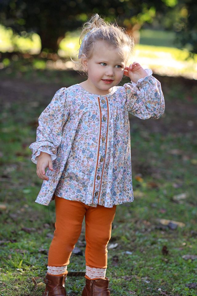 Get your little explorer ready with the Adventurer Set Harvest! This playful tunic and legging combo is perfect for endless adventures, blending comfort and style effortlessly. Soft, breathable fabric keeps her cozy while she explores, and the charming design adds a splash of fun to her day. Ideal for spirited girls who love to roam and discover!