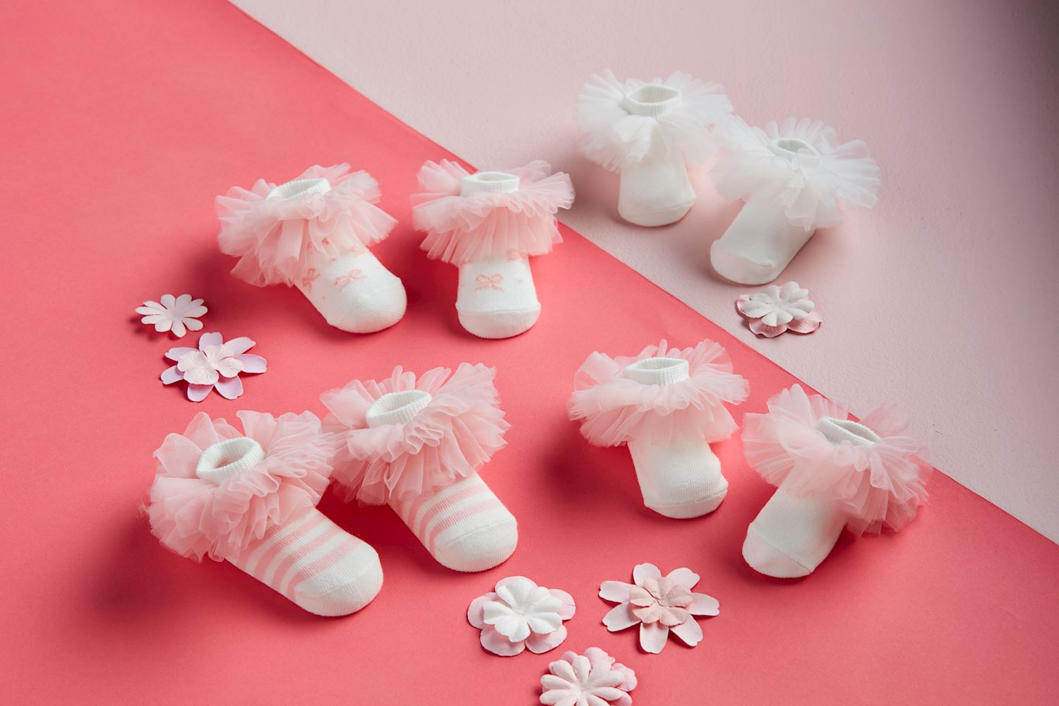 Delight in the charm of these Baby Tutu Socks, designed to add a touch of whimsy to your little one's wardrobe. Crafted from a soft and breathable cotton blend, these socks ensure comfort and flexibility for delicate feet. The enchanting mesh tutu ruffle adds a playful flair, perfect for special occasions or everyday wear. Suitable for infants aged 0-6 months, these socks are composed of 80% cotton for softness, 18% polyester for durability, and 2% spandex for a snug fit. Elevate your baby's style with these adorable and functional socks, combining practicality with a dash of elegance.
