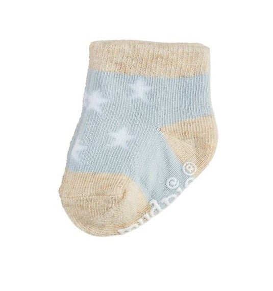 Cotton baby socks. For newborns to babies 3m. Each sold separately. 75% cotton, 23% polyester, 2% spandex. Machine wash cold, tumble dry low