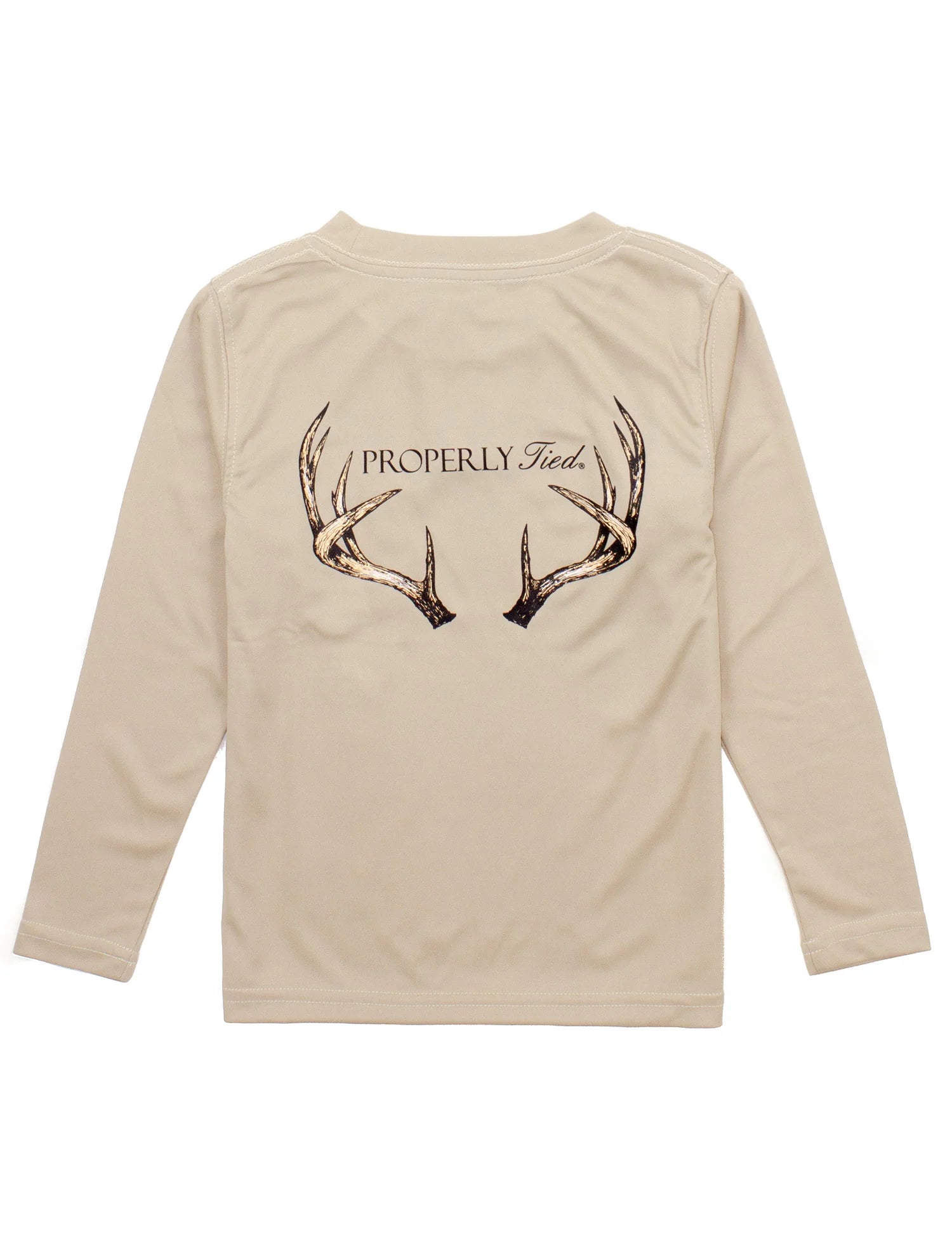 Get your little adventurer ready with the Boys Performance Tee LS in Vintage Antler Sand! This long-sleeve tee combines cozy comfort with a cool, rugged style that’s perfect for active days. The soft fabric moves with every jump, run, and play, while the vintage antler design adds a touch of wilderness fun. Ideal for layering or wearing solo, it’s a go-to for everyday exploring and playtime adventures.