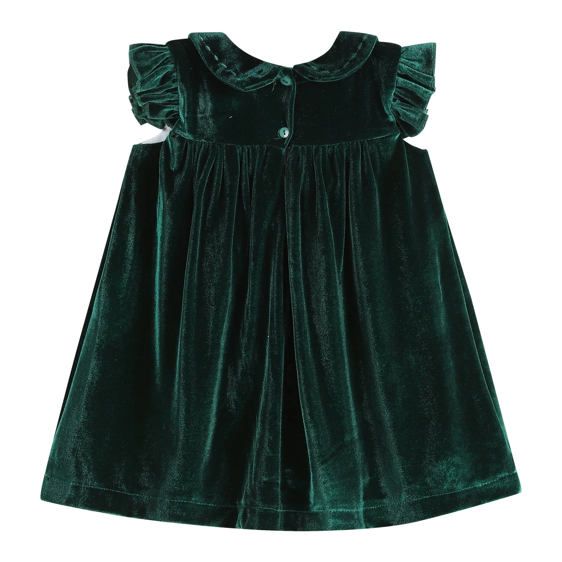 Stunning and Sweet! This beautiful green velvet dress by Lil Cactus features cute ruffle details, and flutter sleeves. A stunning outfit for your cutie and all of her winter wonderland fun. From twirling and dancing the day away to holiday parties with family; no matter the occasion she will be looking picture-perfect!