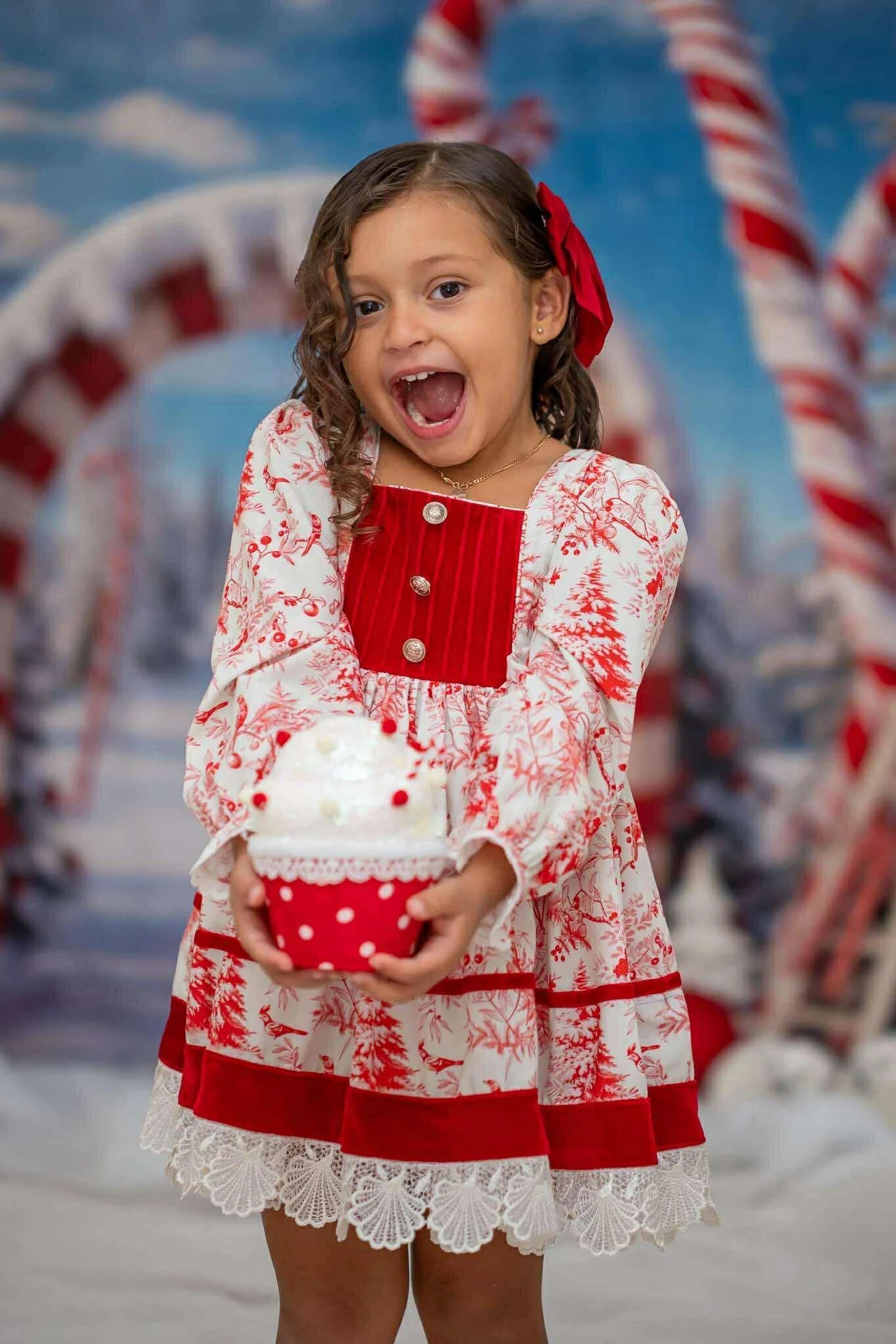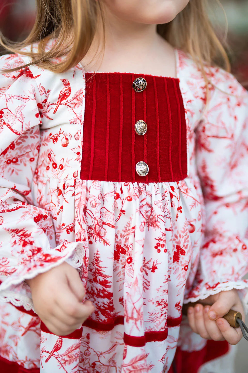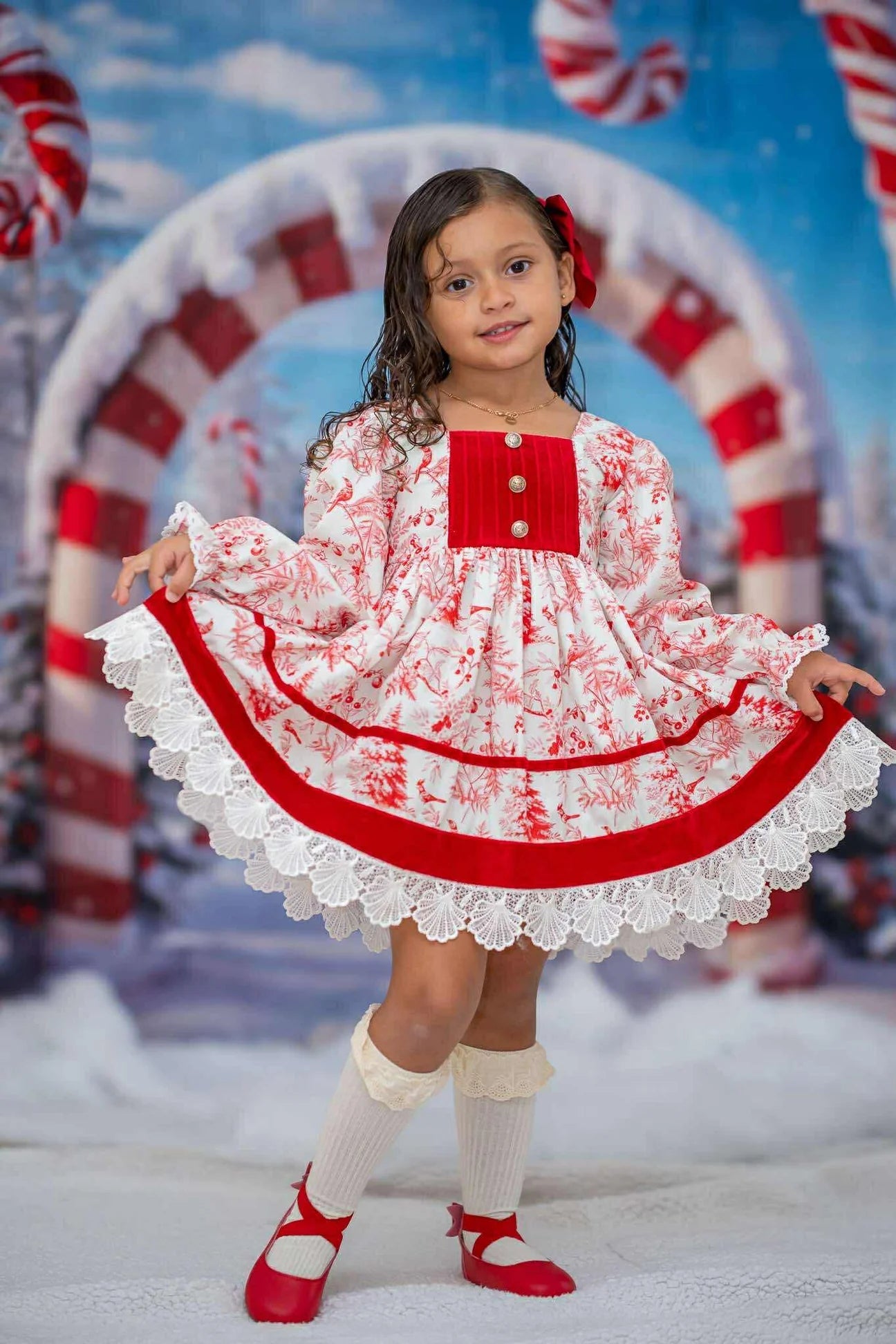 - Red ribbon trim on hemline with an eyelet lace ruffle