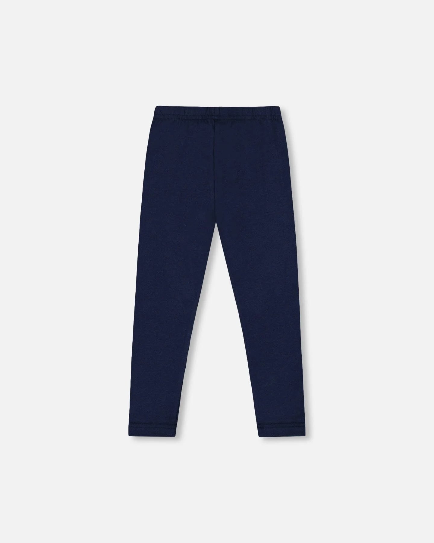 Organic Cotton Jersey Leggings Dark Blue With Cats
